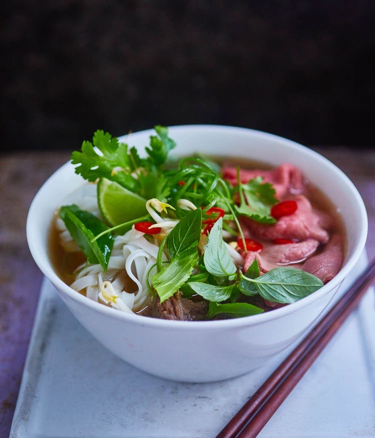 Vietnamese noodle soup with slow-cooked broth (ginger, star anise, cinnamon)